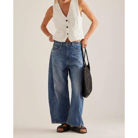 The Kenna Mid-Rise Heritage Barrel Jeans by Pilcro 20
