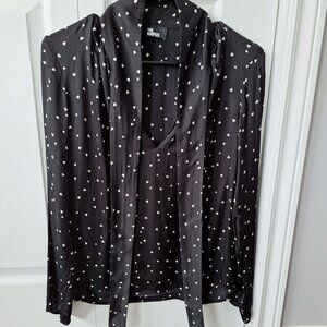 The Kooples Black and White Heart Print Tie-Neck Blouse