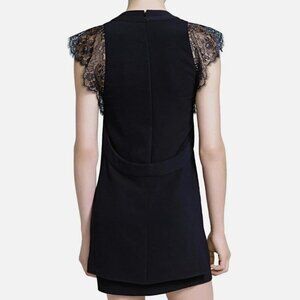 The Kooples Crepe Black Lace Short Cap Sleeve Square Neck Mini Dress Small 4
