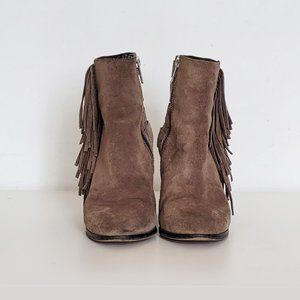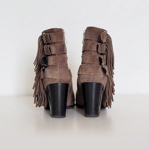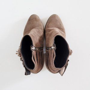 The Kooples - Gray Taupe Zip-up with Buckle Fringe Details Booties - Size 36