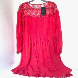 The Kooples Red Lace Chiffon Shift Dress Medium Red Long Sleeve Pleated Mini