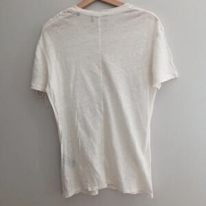 The Kooples Sport Linen Short Sleeve T-Shirt Lace Up Sleeve Off White 2 Medium