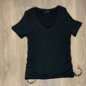 The Kooples Tie Side Lace Up T-Shirt Short Sleeve Viscose Black