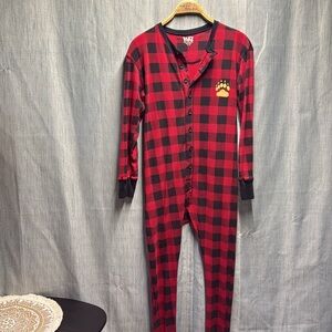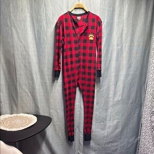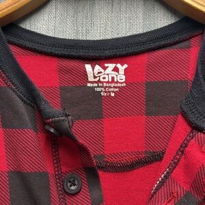 The Lazy one Red and Black Plaid Kids One Piece size medium