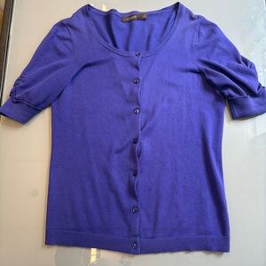 Elevate your wardrobe with this sophisticated blue cardigan from The Limited, featuring a sleek polo collar and a fitted silhouette. Its buttoned design adds a touch of elegance, making it perfect for both casual and semi-formal settings. Crafted for comfort and style, this cardigan is a versatile addition to any outfit.Brand: