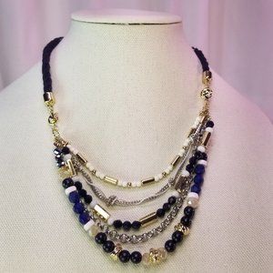 Blue & White 5 Strand, Stone, Faux Pearl & Chain