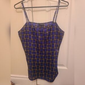 The Limited Satin Square Print Pattern Blue Tank Top Womens Size Small