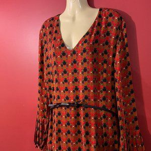The Limited Women's Red Printed Bell Sleeve Pleated Dress - Size 16 - NWT $99