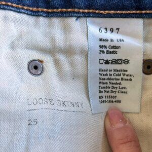 The Loose Skinny- Slouchy, low-slung skinny jeans w/ a slightly dropped crotch in med blue wash