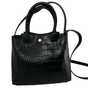 The Lovely Tote Vegan Leather Black Purse Bag Shoulder Top Handle Faux Snake