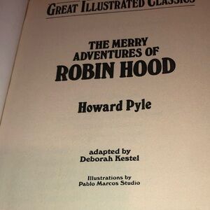 The Merry Adventures of Robin Hood" by Howard Pyle, published as part of the Great Illustrated Classics series. This edition features a vibrant cover and is described as a classic illustrated book.