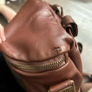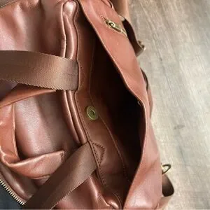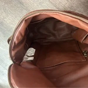 Used condition, spots of the vegan leather peeling (I believe I pictured it all), a few scratches/marks on the inside. Was our daily bag so received lots of love