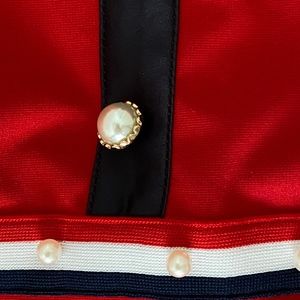 The Moon dress - S. Lovely details such as pearl buttons up the front and on the waist, black fringe around the neck and bottom, zipper back, flattering shape… Truly a unique piece!