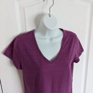 The NORTH FACE V neck t-shirt cotton purple size Medium @Y