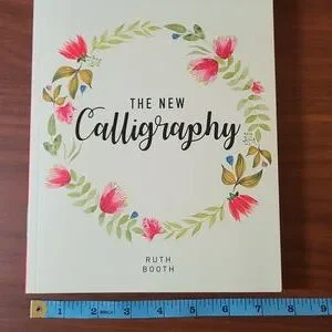 Brand new, never used calligraphy workbook with a glossary and information on writing tools.