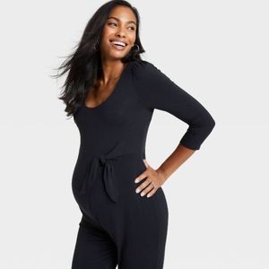 The Nines by HATCH™ Sz Lg 3/4 Sleeve Tie Waist Maternity Jumpsuit Black