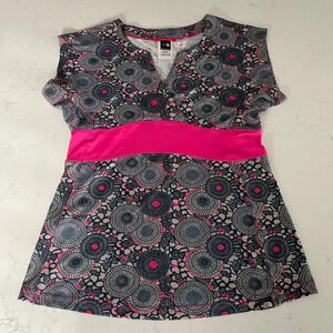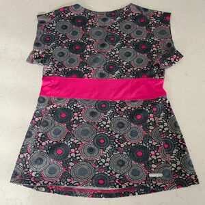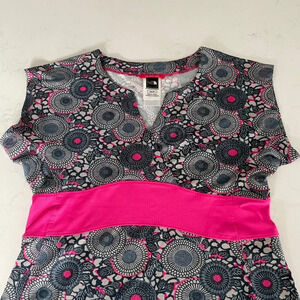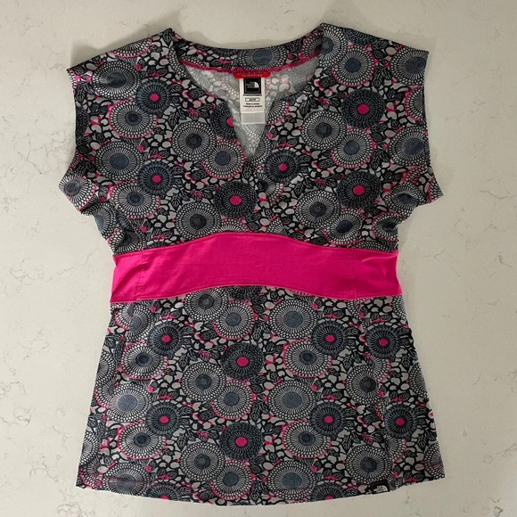 The North Face Activewear Pull On Cap Slv VNeck Print Top Grey Pink Sz XS