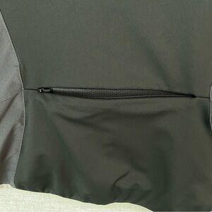 The North Face Convertible Jacket / Vest. Women's tag size Large. Polyester, nylon, elastane blend. Windstopper. Black and gray. Sleeves zip off to create a vest. Zipper close chest pocket. Rear pocket bag.