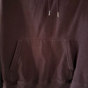 Cozy dark maroon hoodie with drawstring. Features iconic logo on tag.