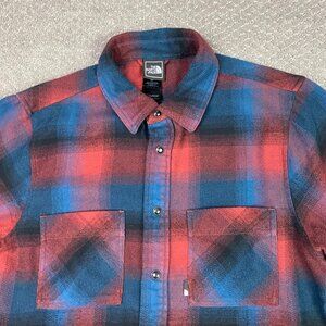 The North Face Flannel Shirt Men's Small Red Blue Black Shadow Plaid Pearl Snap