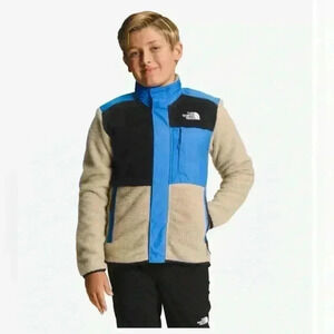Boys (Kids) The North Face Forrest fleece mashup jacket size XL 14-16. Measures 19.5” pit to pit and 25” top to bottom. Measured lying flat. In excellent brand new condition.