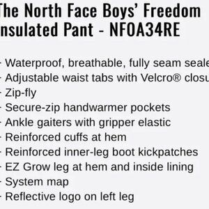 For all-day insulated protection from cold, wintry elements, they can hit the slopes in the durable, waterproof Boys’ Freedom Insulated Pants. They feature reinforced kickpatches, ankle gaiters and Good to Grow cuffs that can be extended by 2'' as they grow taller.