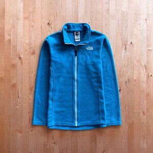 The North Face full-zip light fleece was previously the interior layer of a 3-in-1 system jacket, and has the fasteners on the wrist that would help secure the sleeves inside the shell. White TNF logo embroidered on upper left chest and upper right back. Remains in good condition. Ready to wear and enjoy.