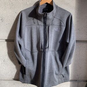 The North Face Gray Waffle Fleece Backed Zip Up Jacket