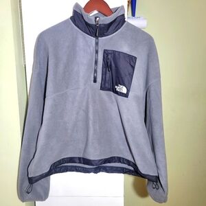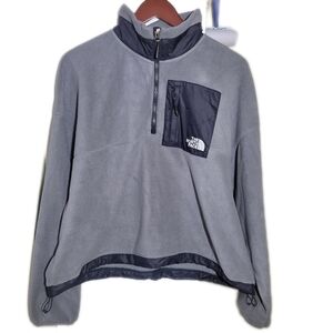 The North Face Hangita Polar 1/4 Zip Fleece crop sweater sweatshirt grey large