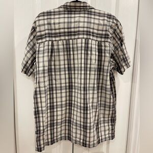 The North Face Men Button Up Shirt Large Gray Plaid Short Sleeve Pockets Collar