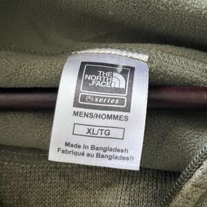 Experience comfort and style with The North Face green zip-up sweater, featuring a full-length zipper and a standing collar. This versatile piece is perfect for casual wear or light outdoor activities, offering a relaxed fit and a solid green color that complements any wardrobe.