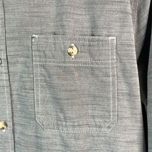 Breathable chambray long-sleeve shirt with buttoned cuffs.