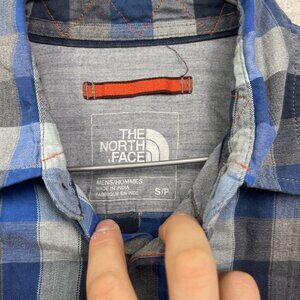 The North Face Mens S Blue Plaid Button Up Long Sleeve Outdoor Shirt Lumberjack
