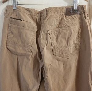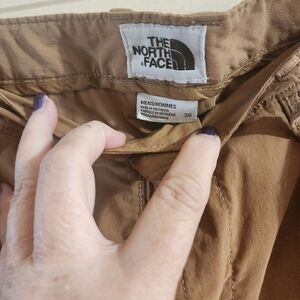 The North Face Men's Sprag 5-Pocket Brown Pants offer versatility and comfort. These standard-fit industrial pants have a non-PFC water-repellent finish and FlashDry™™ technology for moisture management. Perfect for Gorpcore and Techwear lovers! Strategically placed pockets, including a concealed zippered pocket and internal card pocket, handle your small essentials. Enhanced with a crotch gusset and durable ripstop binding, The North Face pants promise mobility and durability during hiking, camping, or other outdoor adventures. These pants size 36X29 are in good used condition with minor wear on the back pocket logo. Please see the photos for details. Model photo is AI generated for general fit view only, not actual pants.