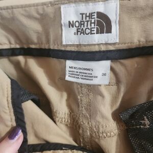 The North Face Men's Sprag 5-Pocket Tan Industrial Pants offer versatility and comfort. At the same time, they look stylish and modern. These standard-fit pants have a non-PFC water-repellent finish and FlashDry™™ technology for moisture management. Perfect for Gorpcore and Techwear lovers! Strategically placed pockets, including a concealed zippered pocket and internal card pocket, handle your small essentials. Enhanced with a crotch gusset and durable ripstop binding, The North Face pants promise mobility and durability during hiking, camping, or other outdoor adventures. These pants are in good used condition with plenty of life left. Model photo is AI generated for general fit view only, not actual pants.