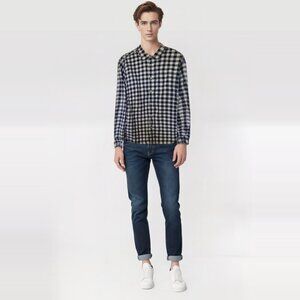The North Face Mens blue white check pattern button down long sleeve shirt