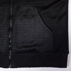 • Features: Long sleeves, Full zip-up, Beautiful "NEVER STOP EXPLORING" spell out design throughout, Kangaroo pocket