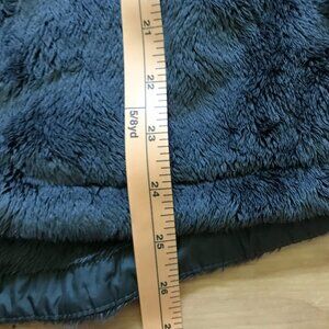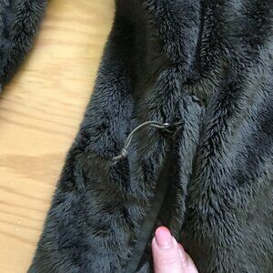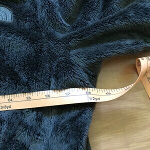 Incredibly soft and cozy North Face full zip sweater in mint condition. Size small. The colour is a very dark olive green/grey. Zip-up side pockets. 18” ptp and 26” long.