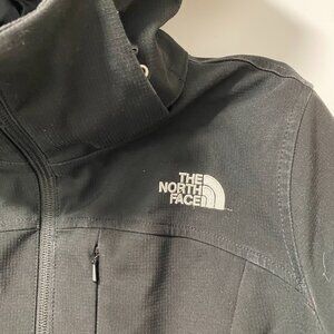 This is a women’s North Face jacket in black, featuring Primaloft® insulation for lightweight warmth without bulk. Built with a softshell exterior, it offers great protection for everyday wear and outdoor activities while maintaining a sleek look.
