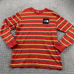 The North Face Shirt Men Medium M Orange Yellow Stripes Long Sleeve T-Shirt