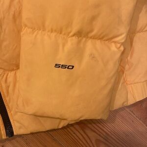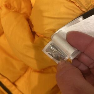 This has been previously worn by me over the years. I’ve always sent my jackets in for a clean when we do our sleeping bags also. Especially the yellow, helps it look cleaner longer. I just got a new puffer and am ready to part with this beloved one. Message if you have questions.