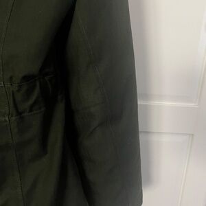 Approx 33” shoulders to bottom front and 36” to bottom back when on hanger