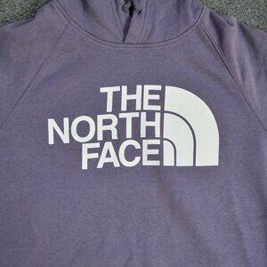 The North Face purple hoodie size M. It has some wash wear and fading, overall it's in very good used condition. Ptp 21", length 25".