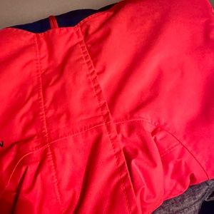 Bright pink and navy winter jacket. Worned by one kid, excellent condition.