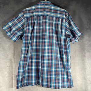 The North Face-Mens Short Sleeve Button Down Shirt-Large-Blue Plaid-Hiking Camp