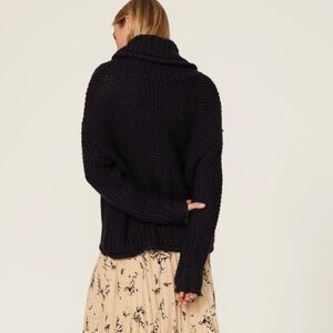 Featuring a relaxed, oversized fit with a folded turtleneck, long sleeves, and ribbed hem, this sweater is perfect for layering over skirts or pairing with jeans for a laid-back yet polished look.