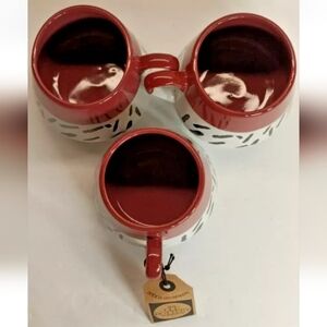 Brand new set of 3(three) The Old Pottery barn 16oz mugs in a nice abstract pattern in black/white/terracotta.