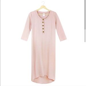 The Original Lou Lou & Company Every Day Maternity and Nursing Dress in blush pink. Unlike the other listings I have for Lou Lou dresses, this dress has a high-low hem. It’s super comfy and great for maternity and breastfeeding with its hidden zipper for easy access. It’s wrinkled from being folded up.