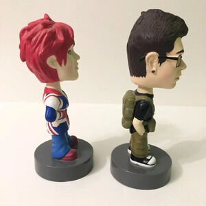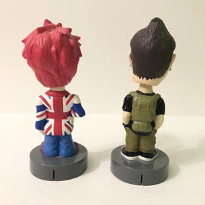 Both bobble heads are pre-owned and in used conditon. The sound does NOT work on both of them. They have some marks and scratches on them. Please see all photos for exact figures.