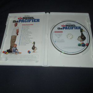 This dvd: The Pacifier from Walt Disney Pictures from 2006 is in really great condition with great condition dvd as well as the case plus the screen sheet, but it does have a Blockbuster sticker over the cover art / insert. This dvd is sold as is.